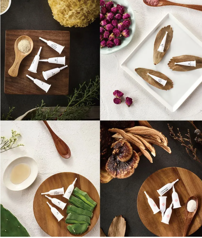 Dr Plant植物医生的石斛兰系列产品,选择石斛兰、虫草、人参等中草药发酵提取液作为核心成分。还有佰草集,在2007年推出太极系列高端产品线,其中选择了人参、熟地黄、灵芝、铁皮石斛等六味中药材,使用酵母菌和乳酸杆菌双重发酵成分,以古法低温发酵保留其中的高活性成分,并产生具有氨基酸等多种有益活性物质,具有较强的修复功效。